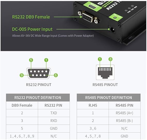 Amazon Com Industrial Electromagnetic Isolated Rs232 To Rs485 Converter With Screw Terminal And Rj45 Connector For Rs485 Db9 Female Connector For Rs232 Adi Magnetical Isolation 1200m Transmission Distance Computers Accessories