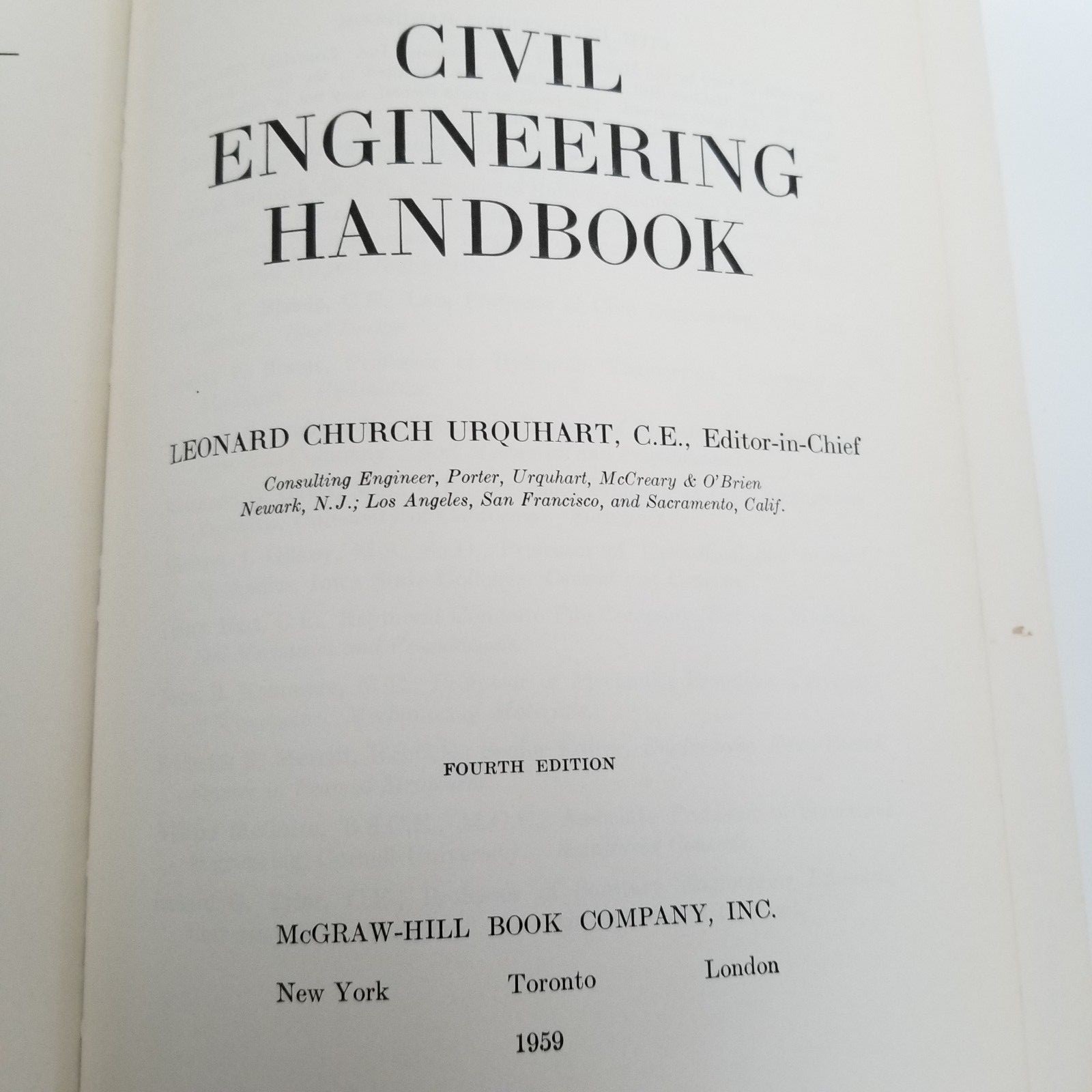 1959 Civil Engineering Handbook Fourth Edition Hardcover Leonard Church Urquhart | eBay