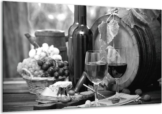 bol.com | Schilderij | Canvas Schilderij Wijn, Keuken | Zwart, Wit, Grijs | 140x90cm 1Luik |...