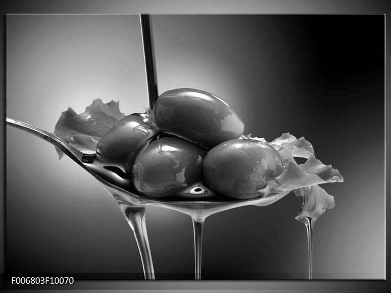Canvas Schilderij Olijven, Keuken | Zwart, Grijs